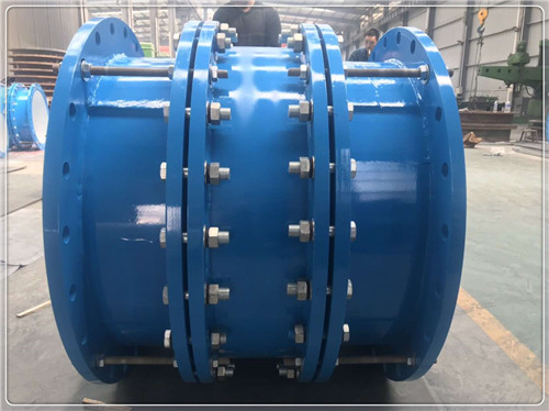 D型大挠度伸缩接头是由短管法兰,本体,压盖,挡圈,限位块,密封副, 压紧构件等所组成,该产品主要可以用于吸收轴向位移和挠度为6°~7°的角位移的管道松套连接的装置。它采用独特的抗轴力设计 ,结构简单、密封性能可靠、抗拉脱力强。具有较大的可挠量和伸缩量,适用于工况恶劣、地形复杂场合的的管道连接。D型大挠度 伸缩接头由于具有良好的综合性能,所以该产品主要可以广泛的用于化工,建筑,给水,排水,循环水等管道系统中。