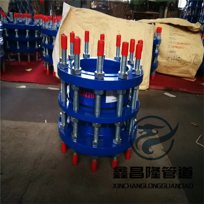 双法兰传力接头由密封圈、阀体、压盖、短管法兰、螺栓和螺母组成。可根据工程管道输送的不同介质选择材料,包括Q235碳钢、不锈钢、球磨铸铁等。适用于输送各种介质。双法兰传力接头主要安装在管道系统连接中,输送介质起传力补偿作用。它连接管道两端的管道,安装使用在供水管道等各种管道系统中。