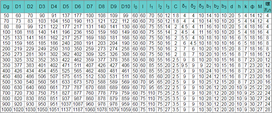 3.表中DN尺寸和墙厚尺寸可根据用户需要生产,定货时请注明通径、管外径、墙厚。